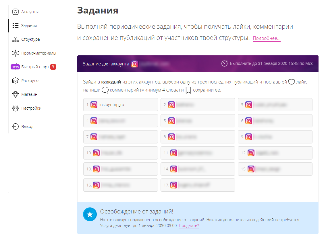 Онлайн-сервис для бесплатной раскрутки инстаграма и франшиза платформы. Проектирование, разработка, поддержка и развитие. Проект заморожен.