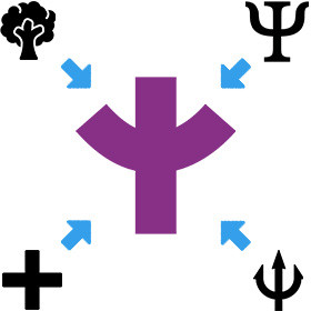 В-пятых, Пси изображает крест, символизируя принятие дуальностей, взаимосвязь всего в мире, пересечение идей и концепций, веру и спасение, а также четыре элемента природы — земля, воздух, огонь, вода.