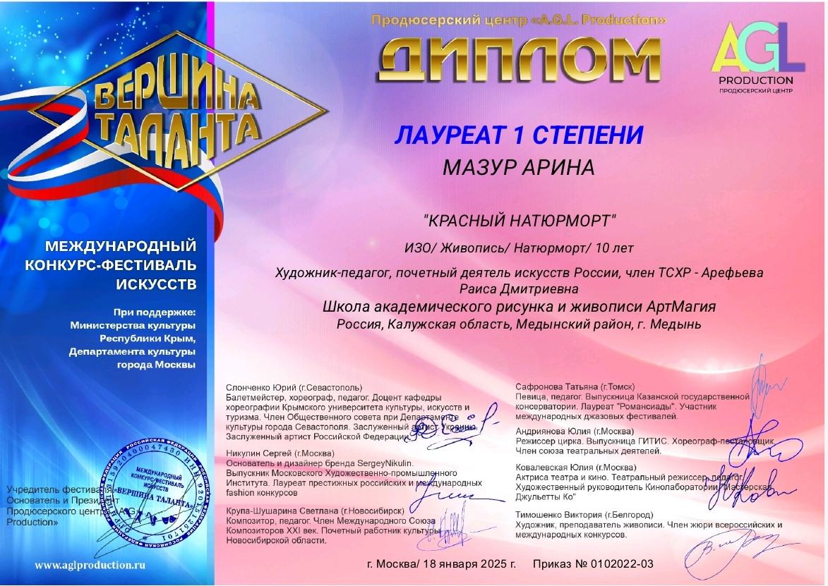 Важным итогом занятий в школе "АртМагия"стало участие учениц в Международном конкурсе-фестивале искусств "Вершина таланта", где они стали лауреатами!