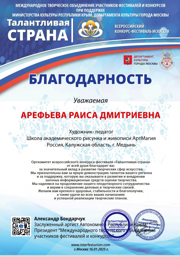 Впечатляющим итогом занятий в школе "АртМагия" за октябрь-декабрь 2024 (3 месяца обучения) стало участие моих учениц во Всероссийском конкурсе-фестивале искусств "Талантливая страна"!