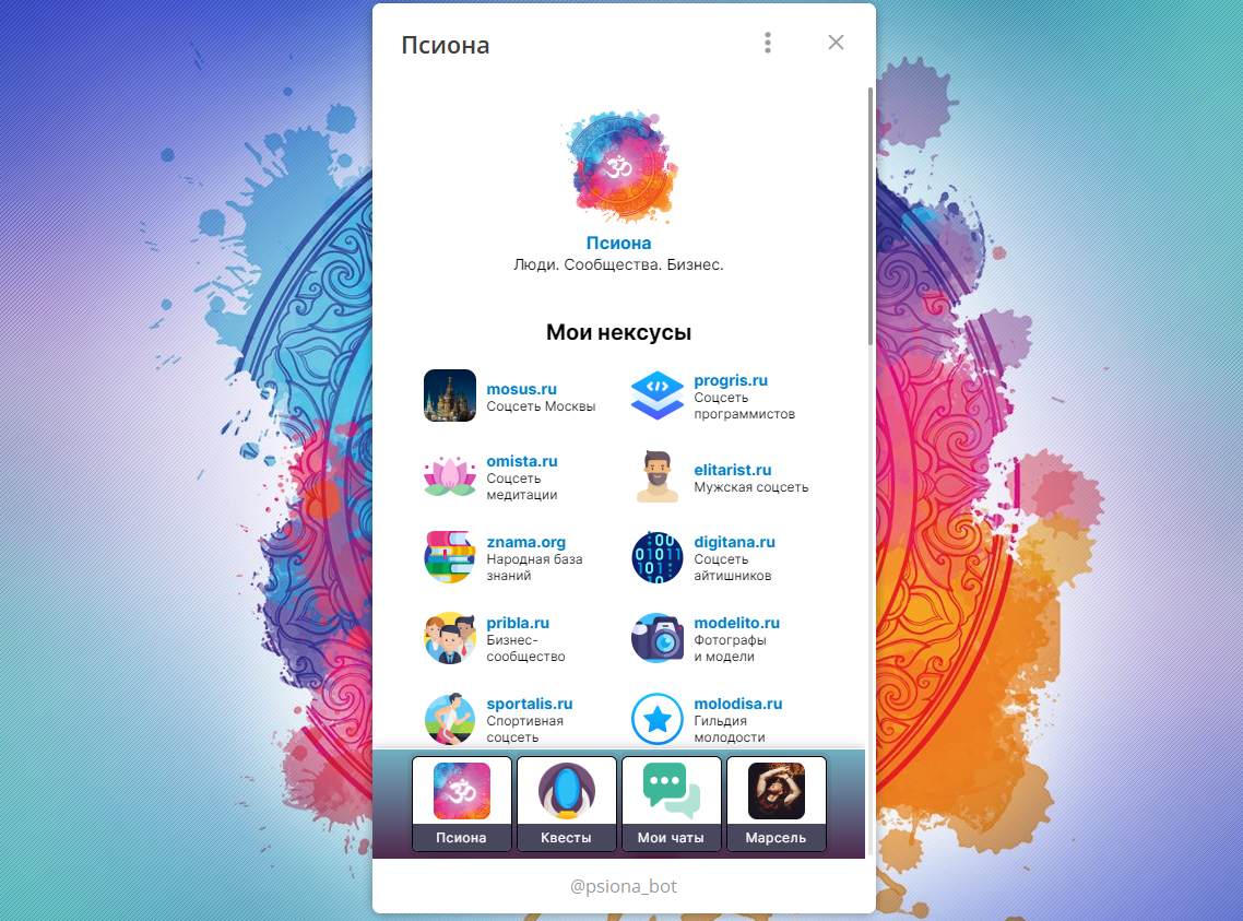 Вышло телеграм-приложение Псионы, оно доступно через телеграм-бота @psiona_bot.