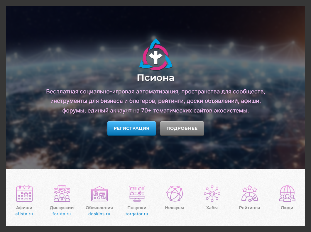 На главной странице Псионы доступно 4 новых агрегатора — афиши, форумы, нексусы, люди. Улучшен общий вид меню агрегаторов. Внутри агрегаторов нексусов, хабов и участников доступна дополнительная навигация.