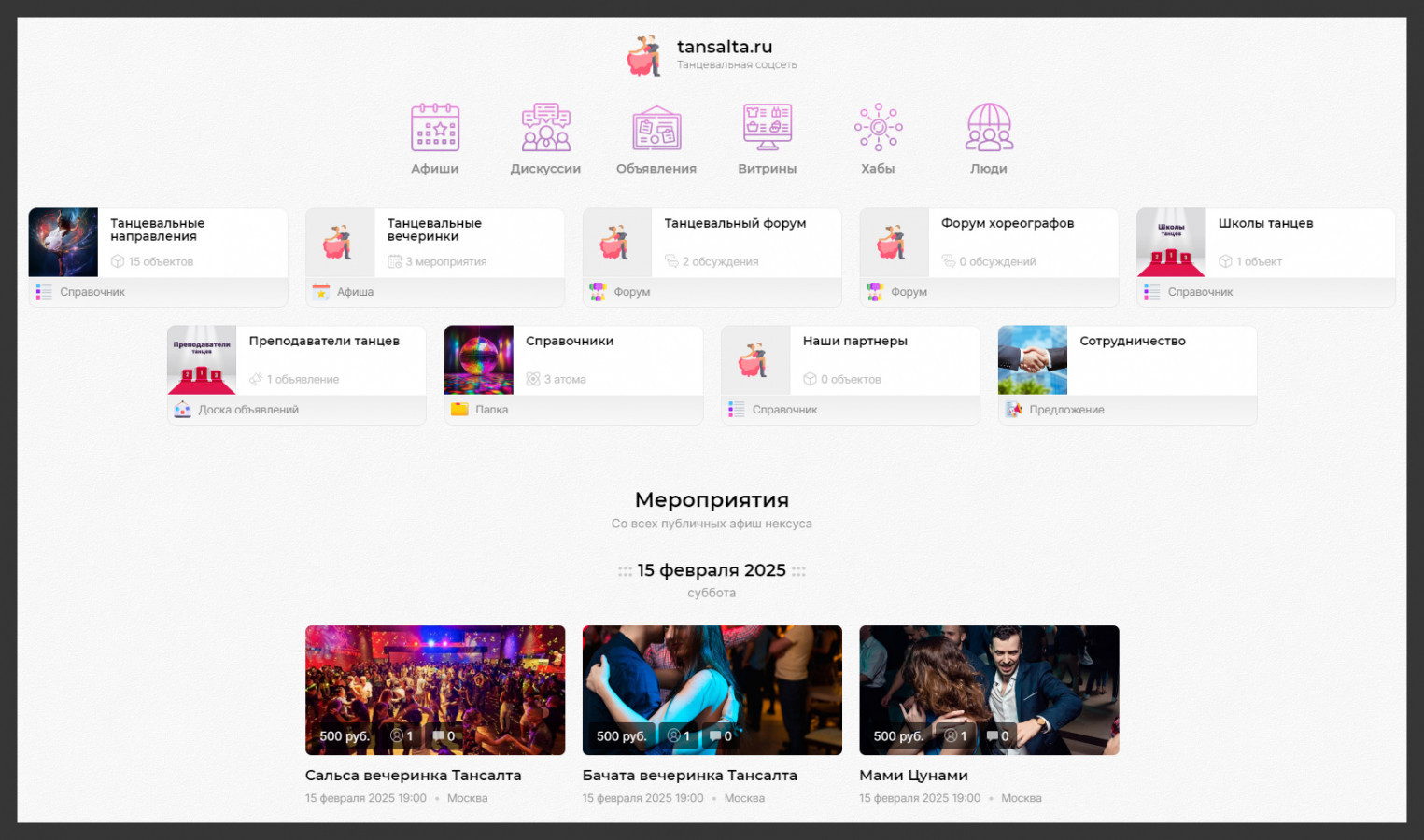 На главной странице Псионы появился агрегатор афиш и мероприятий со всех нексусов. Внутри нексусов доступны мероприятия со всех афиш нексуса.