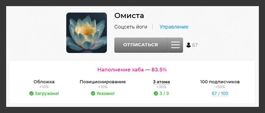 Для владельца хаба на главной странице теперь отображается блок с прогрессом его наполнения. При достижении 100% блок исчезает.